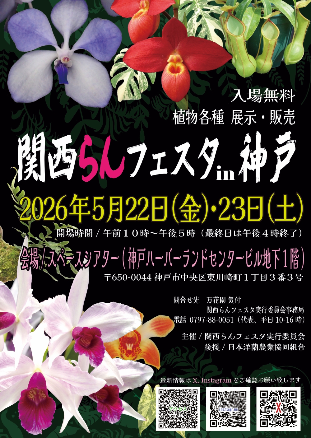 <関西らんフェスタ開催のお知らせ> (2026年3月30日更新) 第11回関西らんフェスタin神戸 2026年5月22日(金)〜23日(土) 午前10時~午後5時 (最終日は午後4時終了) 会場 神戸ハーバーランドビル 地下1階 スペースシアター